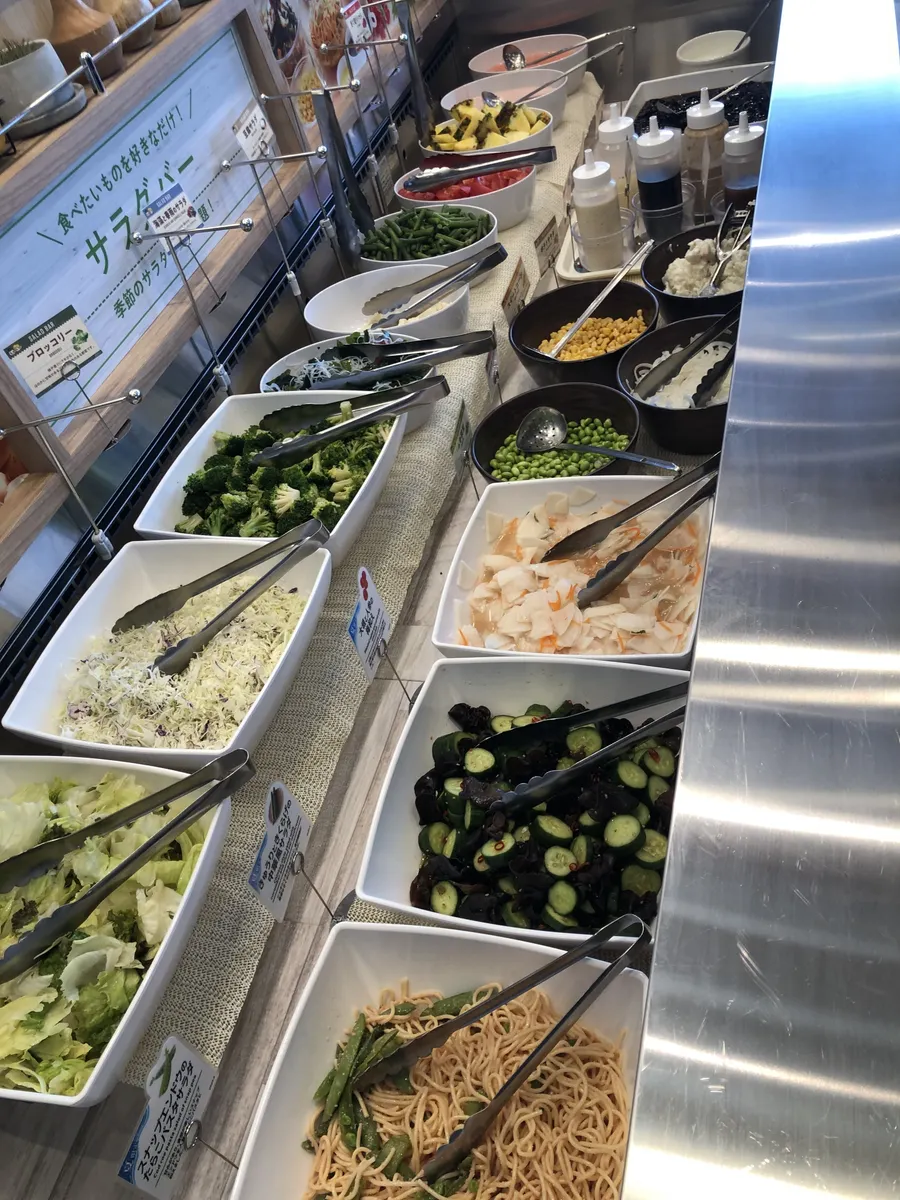 サラダバーの嬉しいポイントを一言で言うと、私的には「お腹いっぱいにならなかったとしてもなんとかなる安心感と食べ放題のお得感」なのですが、サラダバーの魅力って一言で言うと何なのでしょうか???