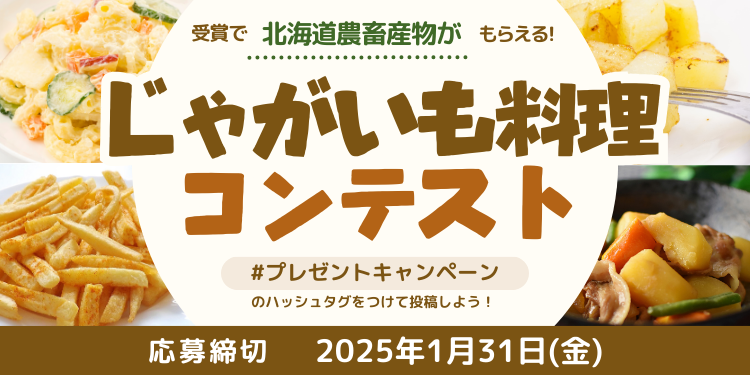 期間中投稿してくださった方の中から、投稿数や投稿内容を総合的に判断し、受賞者を5名選定させていただき、ホクレンカタログより北海道農畜産物をプレゼントいたします🥔🥦