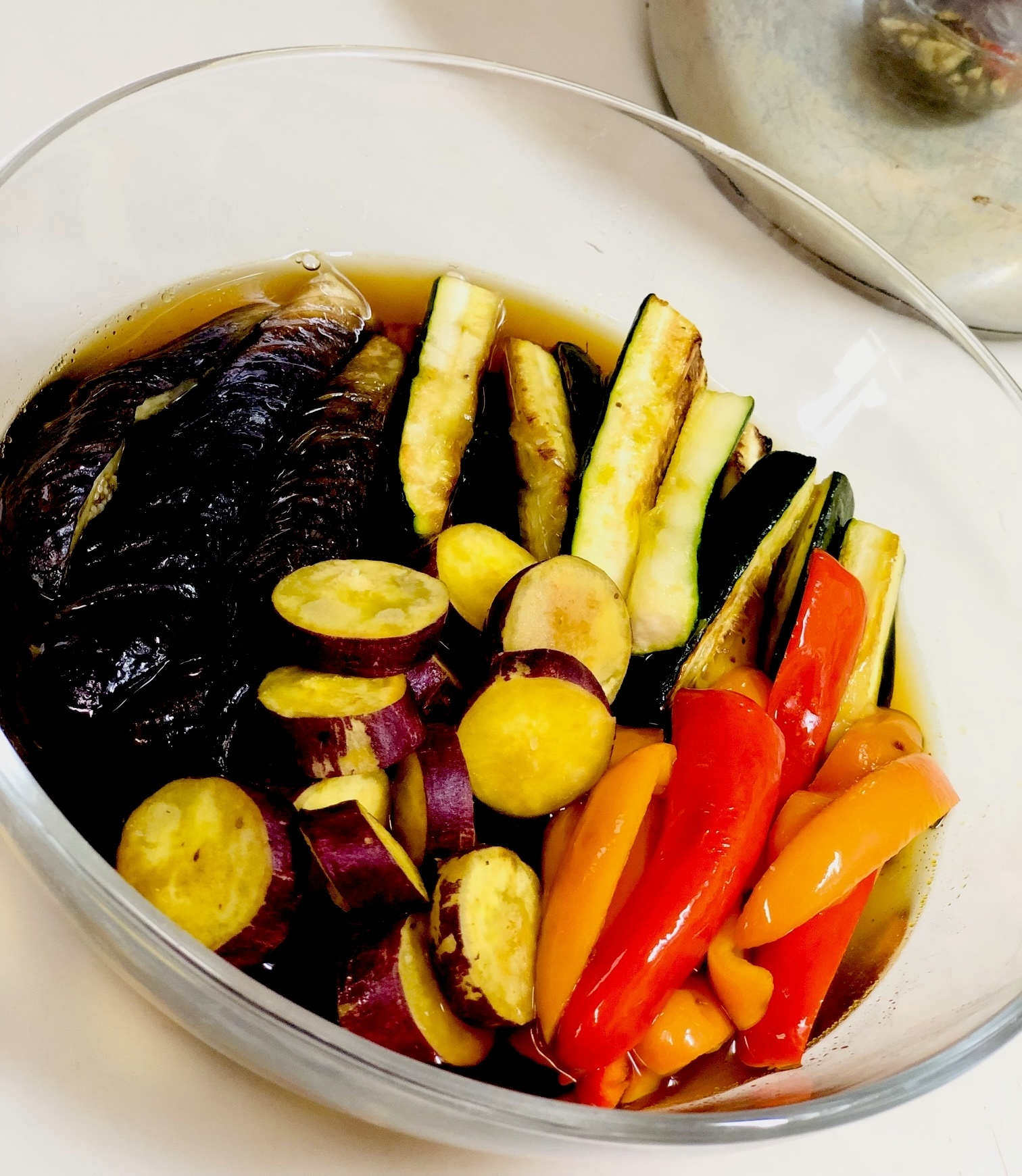 トップ > おやさい企画 > 夏の常備野菜ー揚げ浸しー TAKA 2025/07/28 20:58 夏の常備野菜ー揚げ浸しー 茄子・ズッキーニ・パプリカ・さつまいもを揚げ浸し 出来立ても良いけど、冷やしても👍 エアフライヤーで油分も大幅にカット 薄めの出汁でサラダのようにモリモリ食べちゃう いいね コメントする 0 件の返信 (新着順)