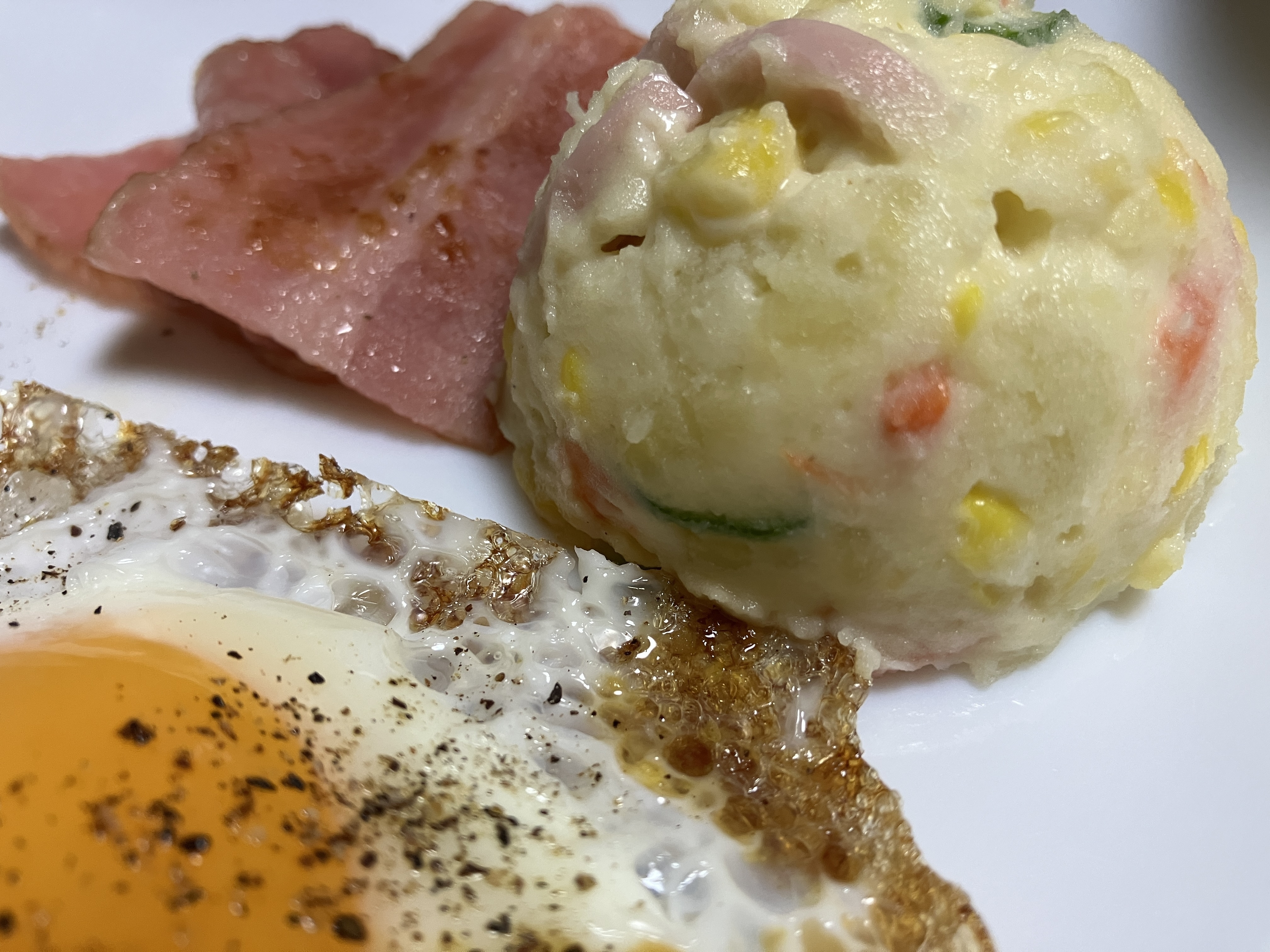 投稿を表示隣の目玉焼きが映えるポテサラですね!色合いのバランスが素敵です。