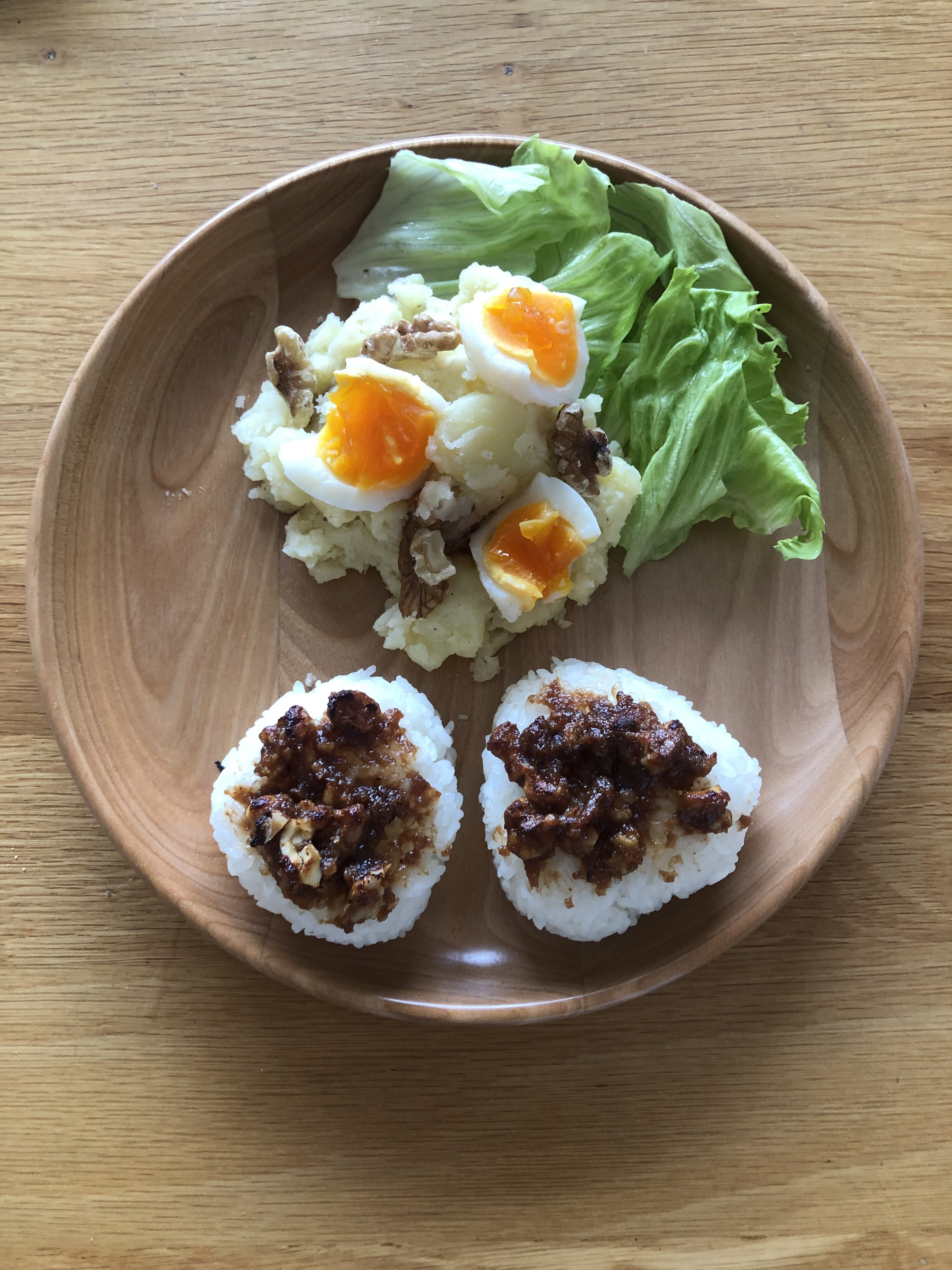 投稿を表示ワンプレートランチいいですね 胡桃 香ばしそうで おむすびもポテサラもおいしそうです♡