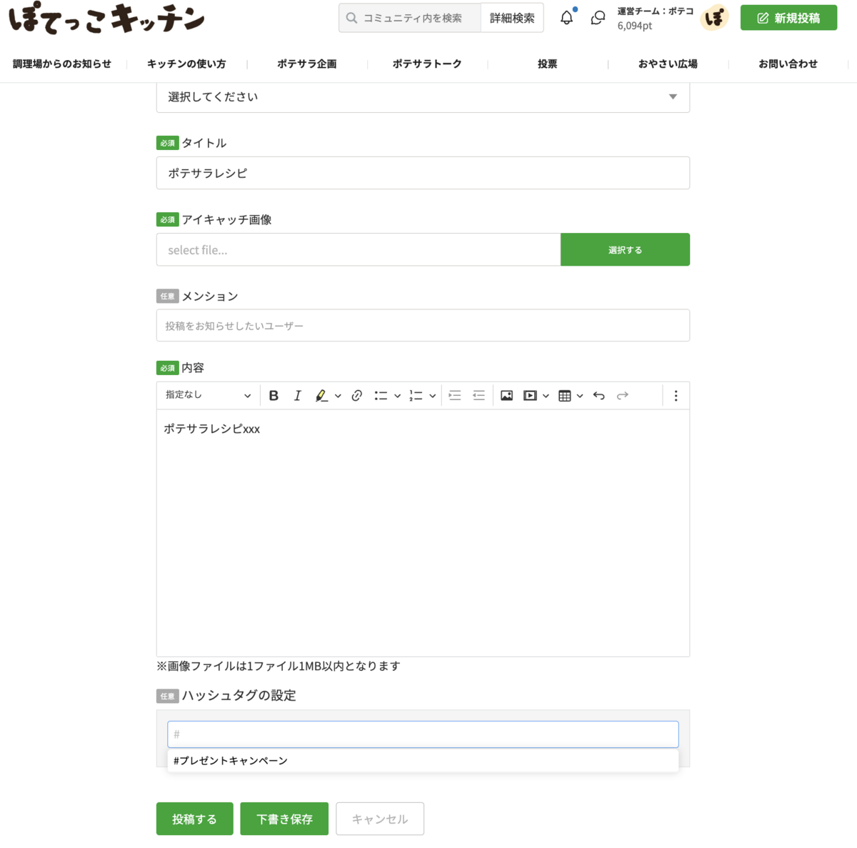 運営からコミュニティサイト内での企画情報(キャンペーンや投票など)、その他ぽてっこキッチンに関する最新情報を配信いたします。