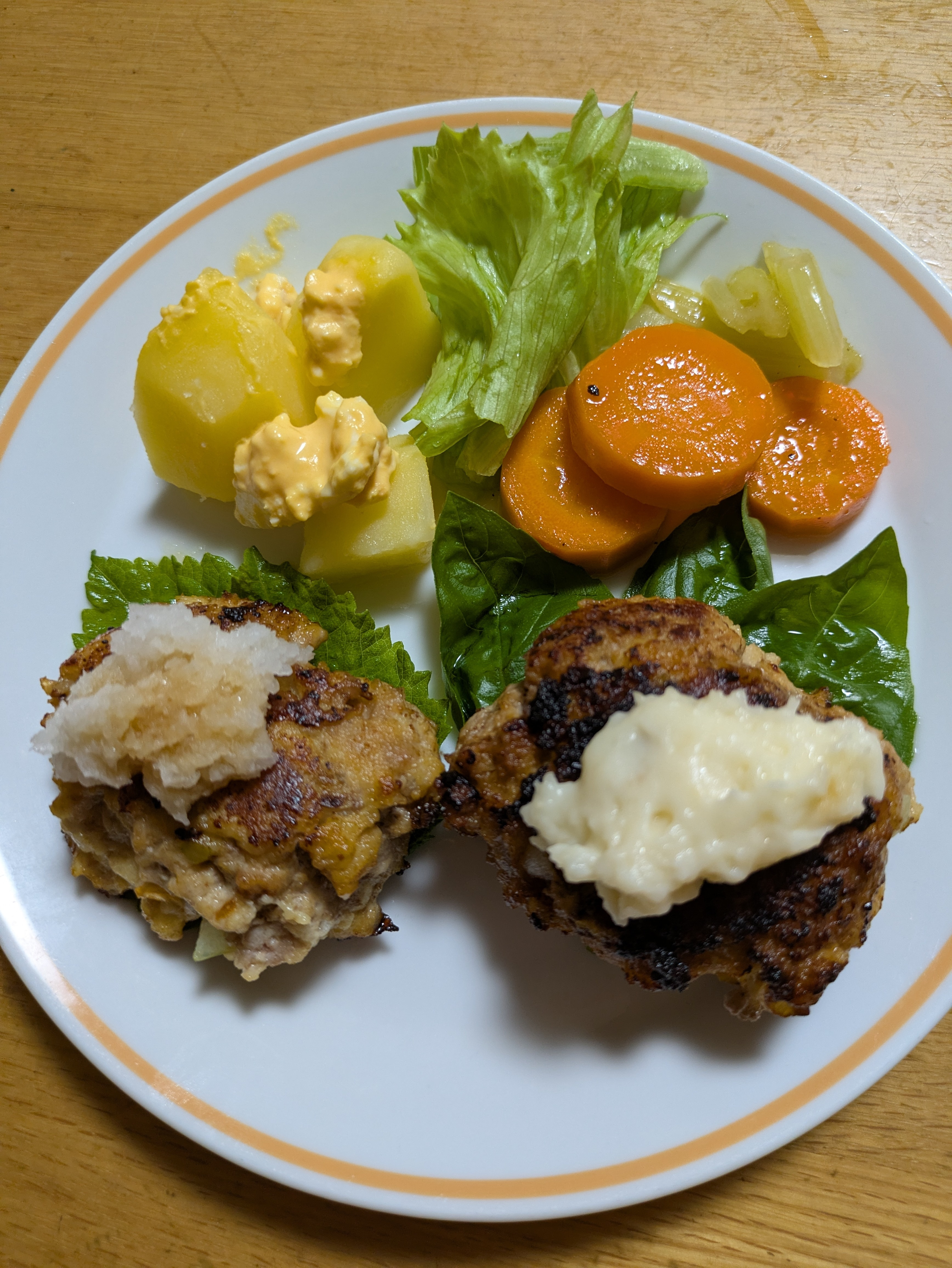 トップ > おやさい企画 > ハンバーグ美味しいな えっちゃん 2025/09/20 12:39 ハンバーグ美味しいな 久々ハンバーグ作りました。 大葉のほうはおろしソース バジルのほうはチーズソース 付け合せにじゃがいもたまごレタスにんじんセロリ いろいろ組み合わせていただきます ハンバーグ焼いたあとのフライパンで ソース作り、また別の料理に使います いいね コメントする 3 件の返信 (新着順) ミュートしたユーザーの投稿です。 投稿を表示 あつこ 2025/09/23 14:40 美味しそうなハンバーグ付け合わせもおしゃれですね。 いいね 返信する ミュートしたユーザーの投稿です。 投稿を表示 えっちゃん 2025/09/24 17:41 あつこ ハンバーグ久しぶりでほんと美味しかったです。 残ったチーズソースは スパイスカレーの味変にぴったりでした いいね 返信する ミュートしたユーザーの投稿です。 投稿を表示 ひこうき 2025/09/20 20:59 凝ってますね 美味しそうです♪ いいね 返信する ミュートしたユーザーの投稿です。 投稿を表示 えっちゃん 2025/09/21 07:50 ひこうき ありがとうございます いいね 返信する ミュートしたユーザーの投稿です。 投稿を表示 くるみ 2025/09/20 15:10 美味しそうなハンバーグプレートですね♪ しそ+おろし、バジル+チーズで全然ちがう2種味わえるのすごく良いですね☺️ いいね 返信する ミュートしたユーザーの投稿です。 投稿を表示 えっちゃん 2025/09/21 07:50 くるみ フライパンに残った油で作ったソースも また美味しかったです! いいね 返信する