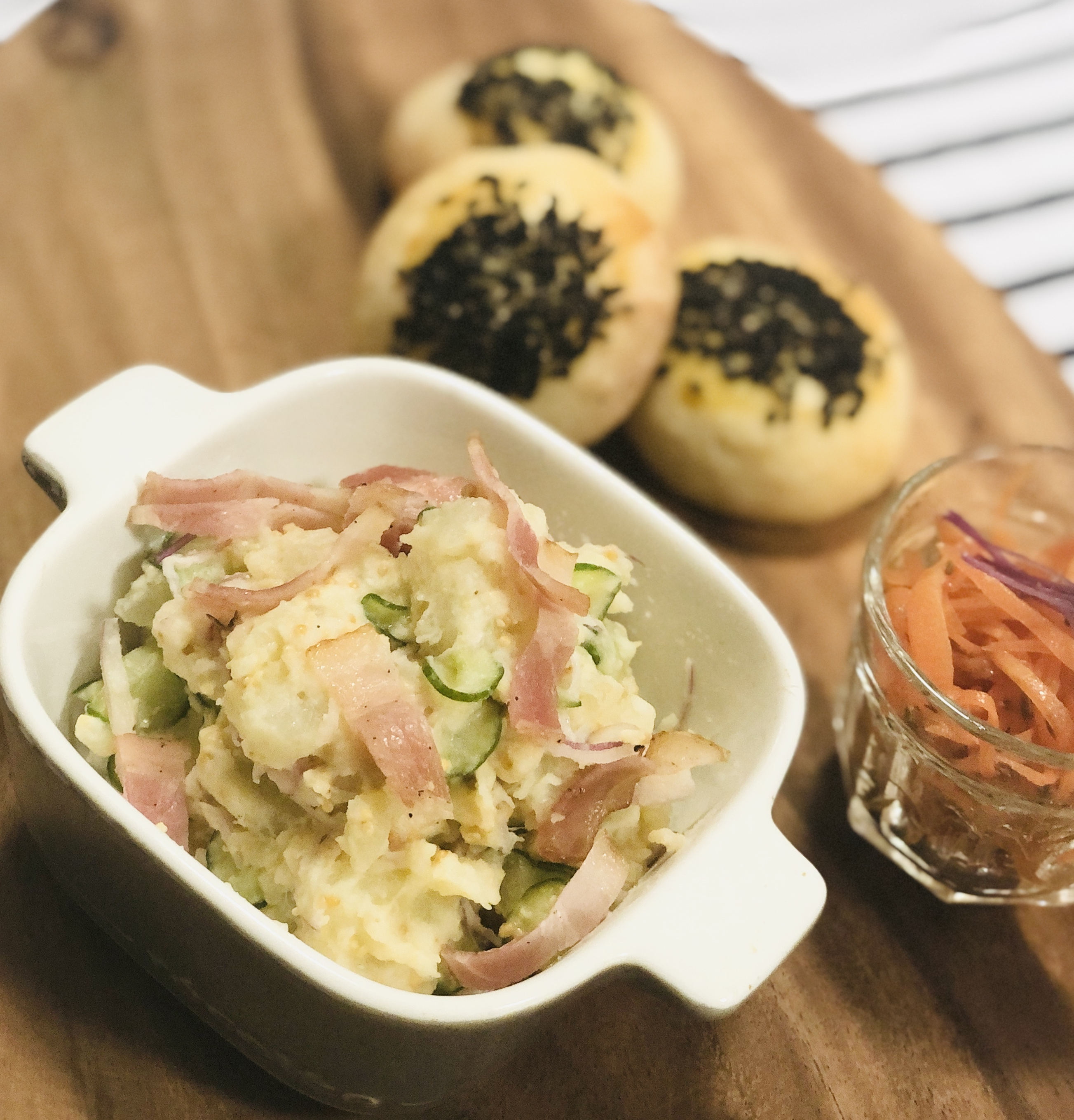 トップ > ポテサラ企画 > ポテサラアレンジ > 粒マスタードポテサラ TAKA 2024/11/16 16:21 粒マスタードポテサラ ご近所さんにじゃがいもを頂いたタイミングで粒マスタードができたので、お酢の代わりに混ぜたら良いかも!とランチに作ってみました 程よい辛味とプチプチがホクホクじゃがいもと合います♡ 焼いたベーコンをトッピングに カリカリに焼いたバケットにのせたらワインのお供にも^ ^ いいね コメントする 4 件の返信 (新着順) ミュートしたユーザーの投稿です。 投稿を表示 草取り名人 2025/01/04 06:32 粒マスタードって家で作れるんですね、知りませんでした。 いいね 返信する ミュートしたユーザーの投稿です。 投稿を表示 ほっこりーナ 2024/11/19 20:39 粒マスタードは買うものと思ってたので、感動しました。 いいね 返信する ミュートしたユーザーの投稿です。 投稿を表示 TAKA 2024/11/19 21:54 ほっこりーナ マスタードを潰す加減で辛味の調整ができるのは手作りならではですかね^_^ 火を入れることもないので意外とすぐできますし、色々なお料理に使えると思います いいね 返信する ミュートしたユーザーの投稿です。 投稿を表示 くるみ 2024/11/18 09:51 粒マスタード、私も作ってみたくて1度挑戦したことあります。すり鉢は本格派ですね! いいね 返信する 他 1 件の返信を表示 ミュートしたユーザーの投稿です。 投稿を表示 TAKA 2024/11/18 10:42 くるみ そうなんですね♡ 我が家にあるのはどんぶりサイズのすり鉢なので手軽に扱えるし、ふやかしたマスタードシードはプチプチ潰れるので簡単楽しい作業です いいね 返信する ミュートしたユーザーの投稿です。 投稿を表示 くるみ 2024/11/18 16:15 TAKA ズボラなので保存瓶でマスタードふやかして、保存瓶に入れたまますり棒で押して軽く潰して作ってました☆ いいね 返信する ミュートしたユーザーの投稿です。 投稿を表示 TAKA 2024/11/18 17:36 くるみ それはお手軽にできて良いですね^ ^ いいね 返信する ミュートしたユーザーの投稿です。 投稿を表示 ひよっこ 2024/11/17 07:32 粒マスタードはすり鉢でするのでしょうか。知らなかったです。自分では作ったことがありません。 いいね 返信する ミュートしたユーザーの投稿です。 投稿を表示 TAKA 2024/11/17 14:12 ひよっこ 市販の粒マスタードでしたらそのままで! マスタードシードがあったので自作しました 粒を半量ぐらい潰すとマスタード特有のツンと鼻に抜ける感じが際立ちますが… 粒が細かいのでブレンダーなどでは潰せず>_< すり鉢で (スプーンなどでも潰せるようですが) 思いつきでポテサラにしてみましたが大人味オススメです いいね 返信する
