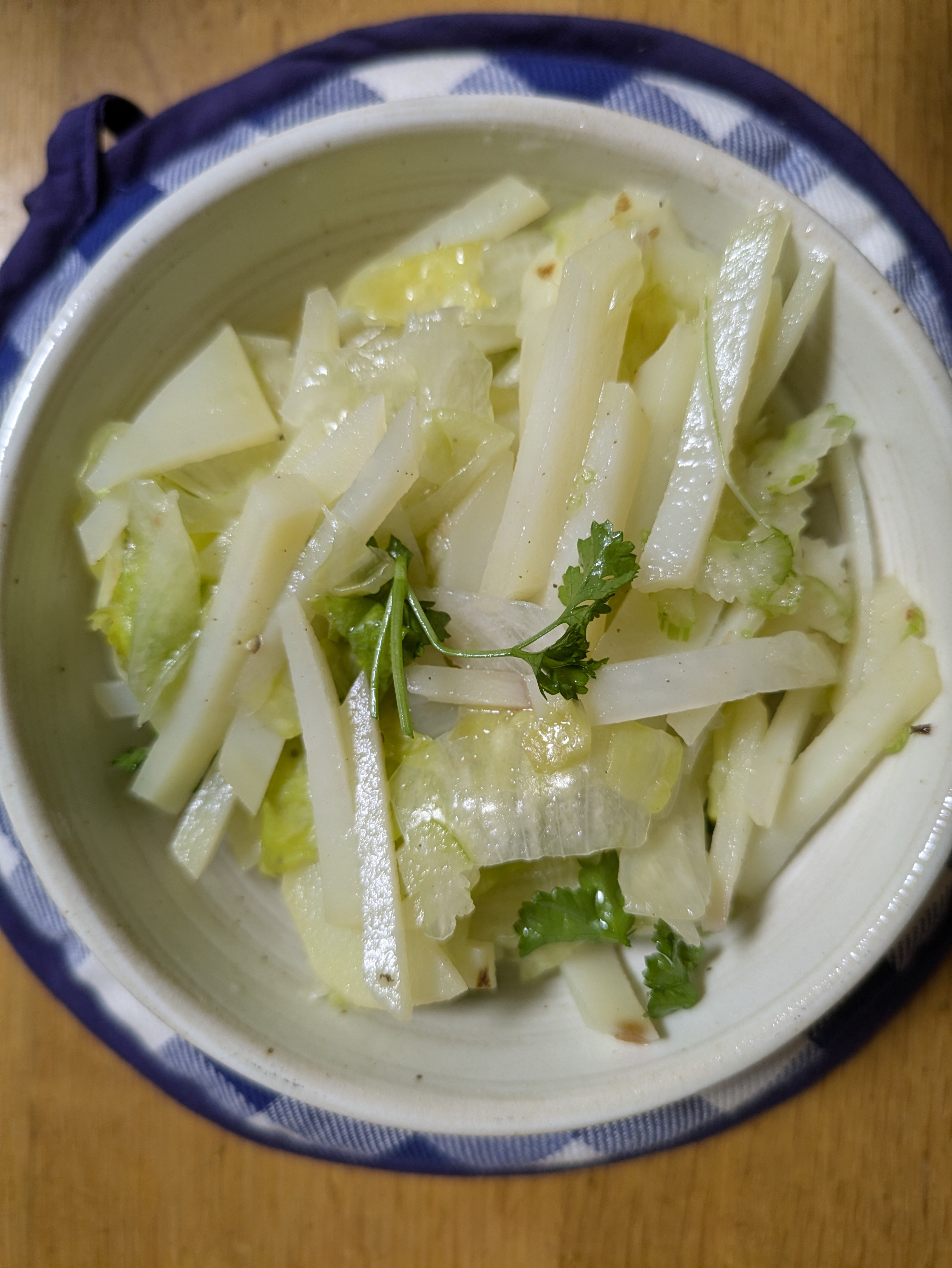 じゃがいもレタスセロリの順に加えて混ぜます。