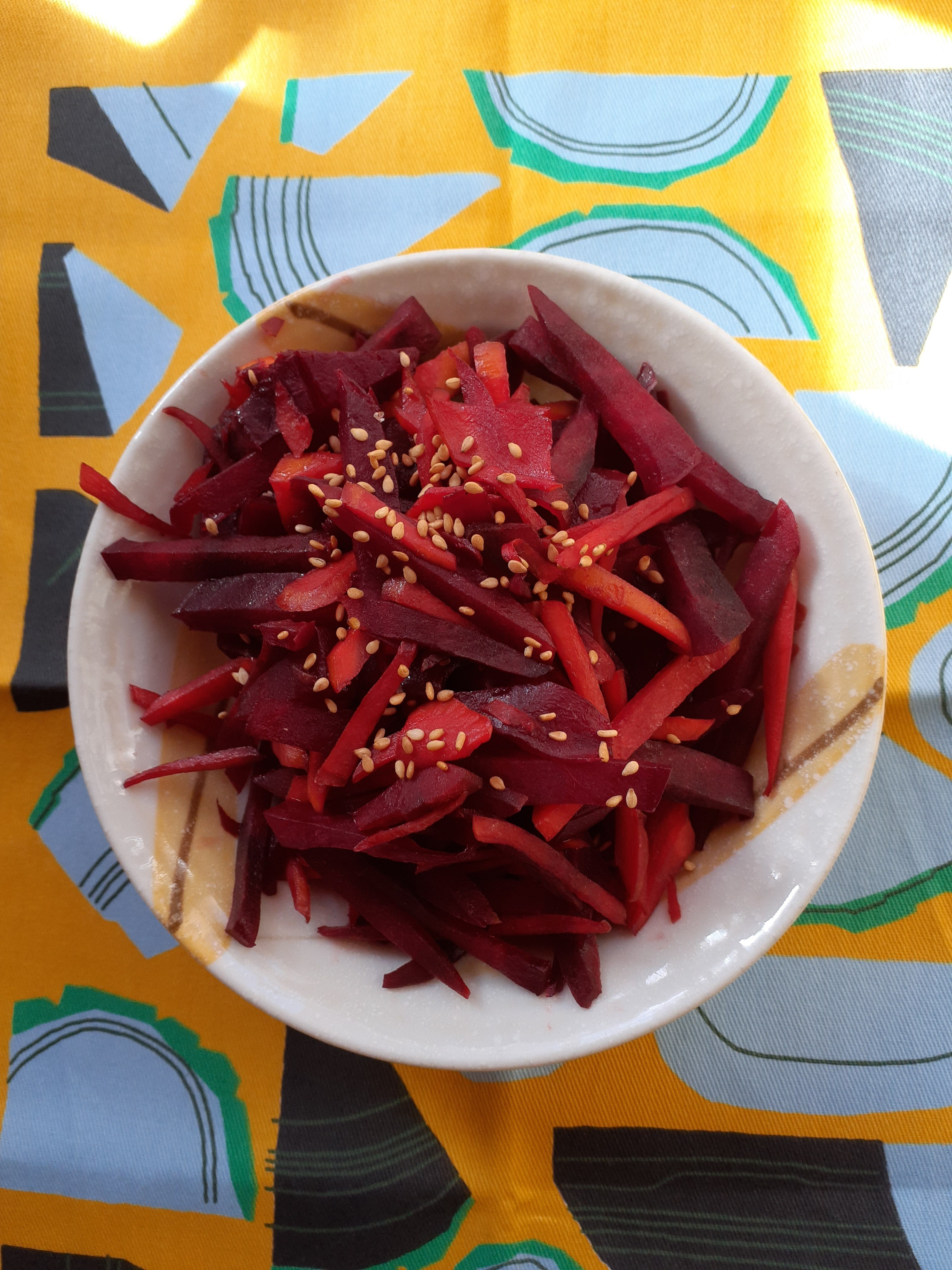 トップ > おやさい企画 > 初めてのビーツ ほっこりーナ 2025/09/22 09:24 初めてのビーツ 百貨店にビーツが売ってて娘が買ってきてくれました。下ごしらえをオーブンで50分して(昨夜は涼しくオーブンの熱さ気にならず良かった)今朝人参ときんぴらにしました。長野県産レッドビーツと表示があり、初めての調理体験でした。 いいね コメントする 2 件の返信 (新着順) ミュートしたユーザーの投稿です。 投稿を表示 くるみ 2025/09/23 04:24 長野でビーツ栽培してるんですね! ビーツは外食で煮込み料理を食べた事しかないです。 真っ赤な色が身体に良さそうですね♡ お味はどうでしたか? いいね 返信する ミュートしたユーザーの投稿です。 投稿を表示 ほっこりーナ 2025/09/23 10:04 くるみ ビーツそのものには味が無いように思い、食感は外部分は柔らかく、芯はシャキシャキという感じです。たぶんボルシチのように肉などの味を吸い込んで美味しくなるのでしょうか? いいね 返信する ミュートしたユーザーの投稿です。 投稿を表示 くるみ 2025/09/23 12:25 ほっこりーナ ありがとうございます! そうなんですね、私が食べた時もソーセージやお肉と一緒に煮込まれたものでした。 いいね 返信する ミュートしたユーザーの投稿です。 投稿を表示 ひこうき 2025/09/22 21:14 下ごしらえに時間がかかるんですね お店でしか食べた事ないです いいね 返信する