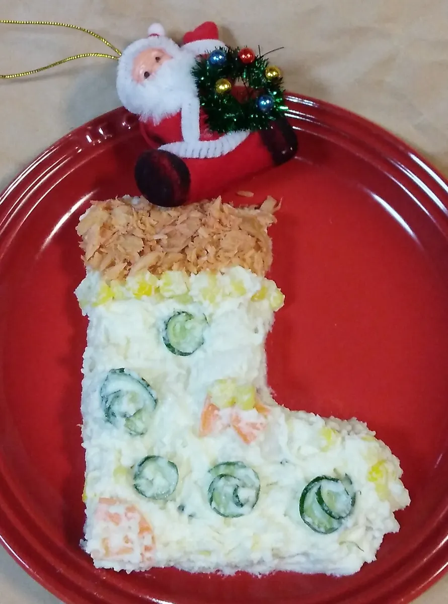 投稿を表示赤いお皿にポテサラ靴下映えますね(^O^)v