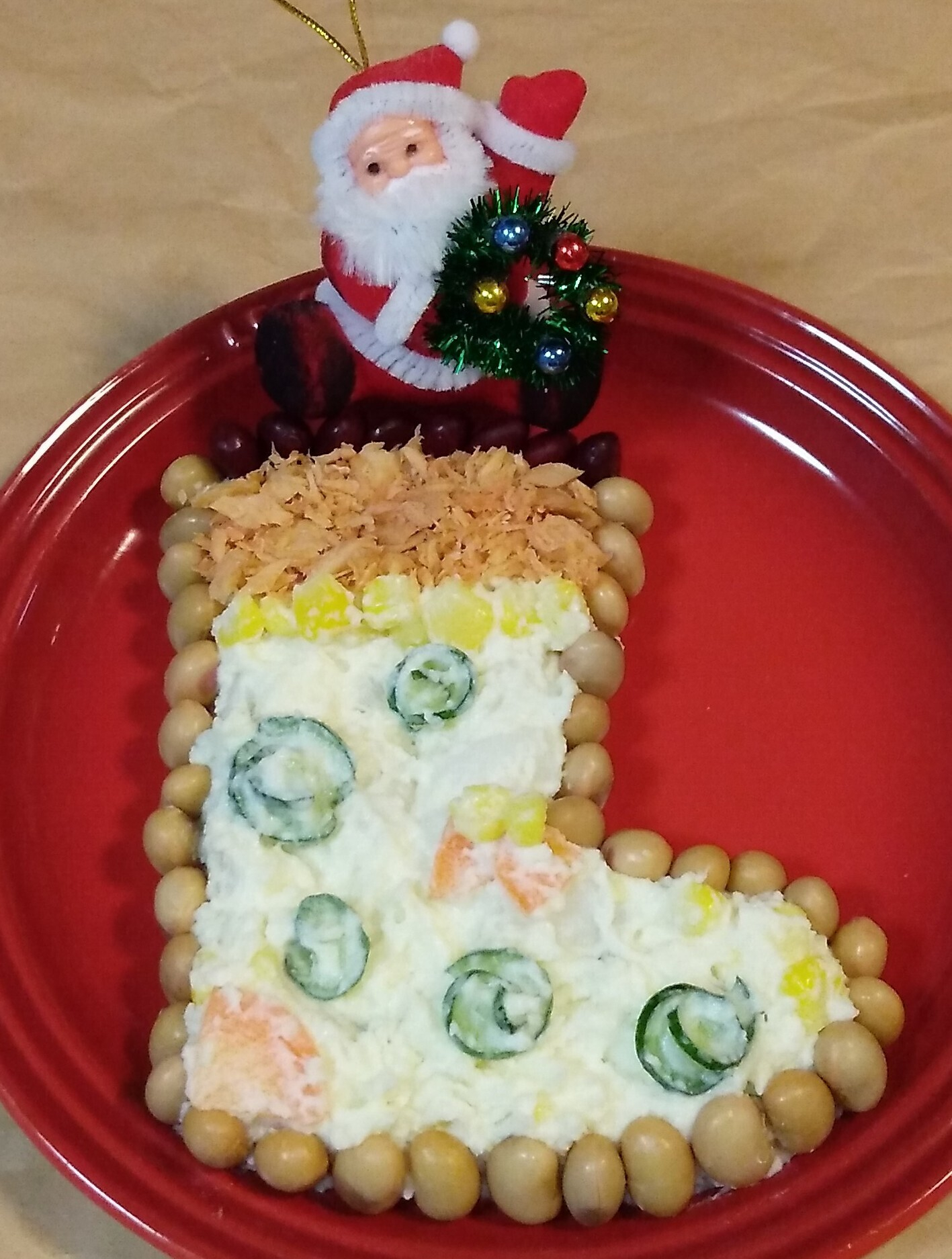 トップ > ポテサラ企画 > ポテサラアレンジ > サンタさ~ん こっちこっち(^^)/ soyokaze 2025/12/24 22:45 サンタさ~ん こっちこっち(^^)/ ぺったんこの くつした に、夢と希望と大好き!をいっぱい 詰めて いって くださ~いm(_ _)m お惣菜の ポテトサラダと蒸し豆と ほぐし鮭でした、手抜きの願いじゃ 効き目は無いかなぁ(;^_^A いいね コメントする 1 件の返信 (新着順) ミュートしたユーザーの投稿です。 投稿を表示 えっちゃん 2025/12/25 04:37 赤いお皿にポテサラ靴下映えますね(^O^)v サンタさんも楽しそう 良いものたくさん詰め込んでもらえますね♡ いいね 返信する