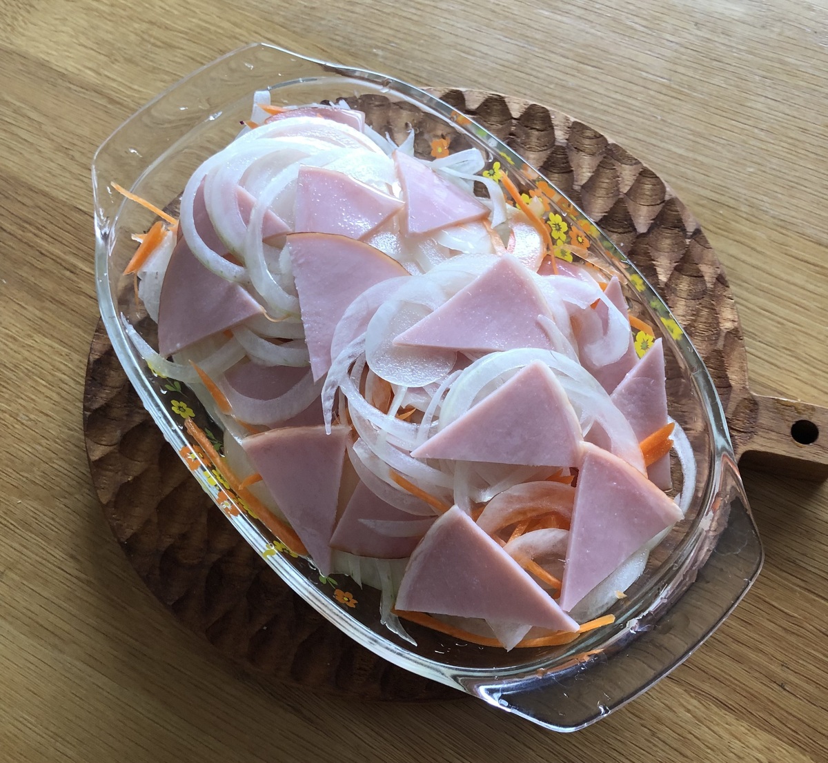 投稿を表示玉ねぎとハムがつやつやして美味しそうですね