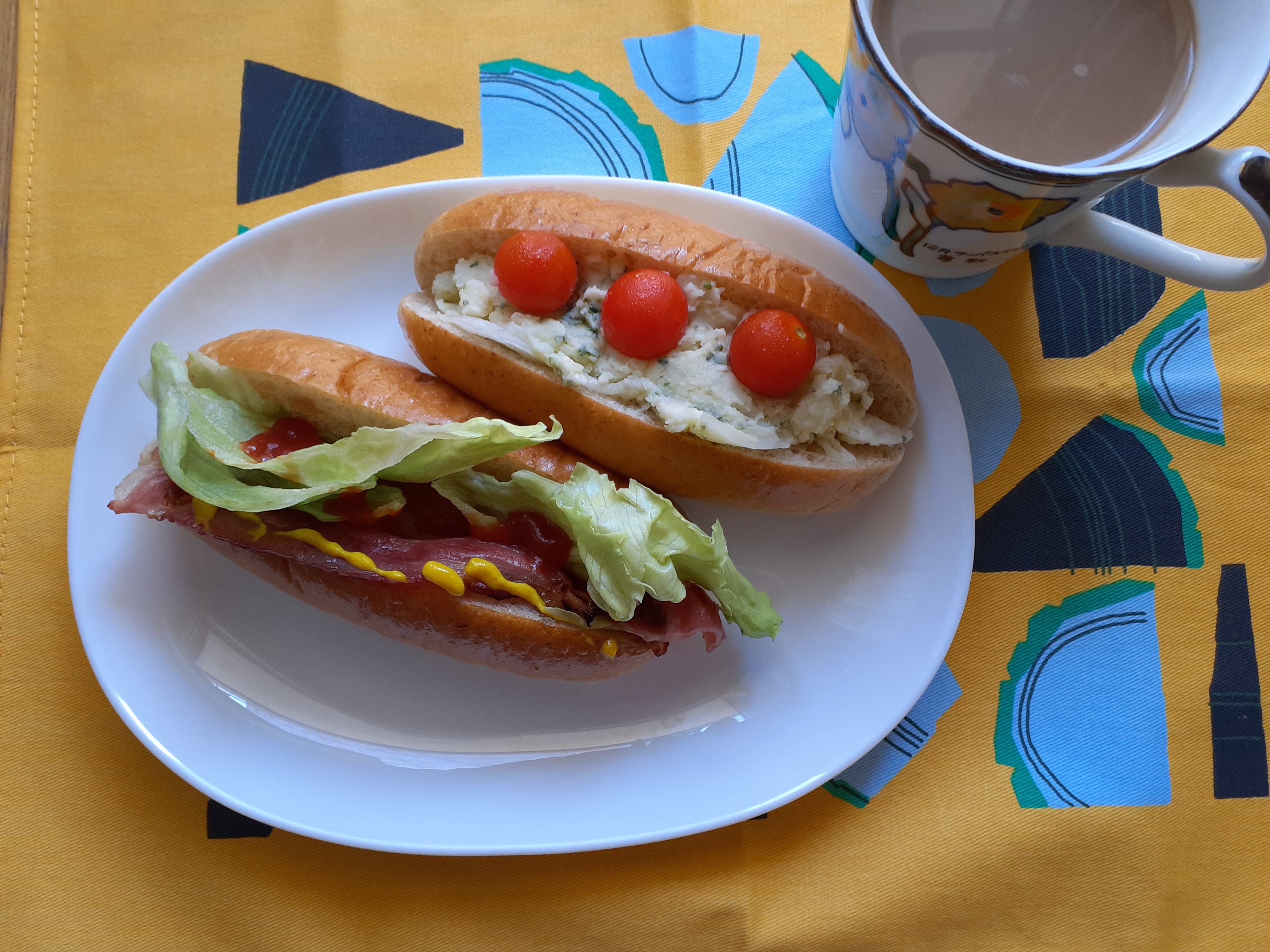トップ > ポテサラ企画 > ポテサラアレンジ > ポテサラドッグ&ベーコンドッグ ほっこりーナ 2025/07/22 23:22 ポテサラドッグ&ベーコンドッグ 昨日の残りのポテサラを全粒粉、オーツ麦入りのロールパンにはさみました。ベーコンドッグは焼いたベーコンとレタス、マスタードとケチャップで味に変化を持たせた今日のランチです。 いいね コメントする 3 件の返信 (新着順) ミュートしたユーザーの投稿です。 投稿を表示 ひよっこ 2025/07/25 03:58 彩りもよく、バランスが取れたランチですね。 いいね 返信する ミュートしたユーザーの投稿です。 投稿を表示 あつこ 2025/07/24 15:12 両方美味しそうです。 いいね 返信する ミュートしたユーザーの投稿です。 投稿を表示 ひこうき 2025/07/23 22:07 健康的で美味しそうなパンですね 焼いたベーコンもいいですね😋 いいね 返信する