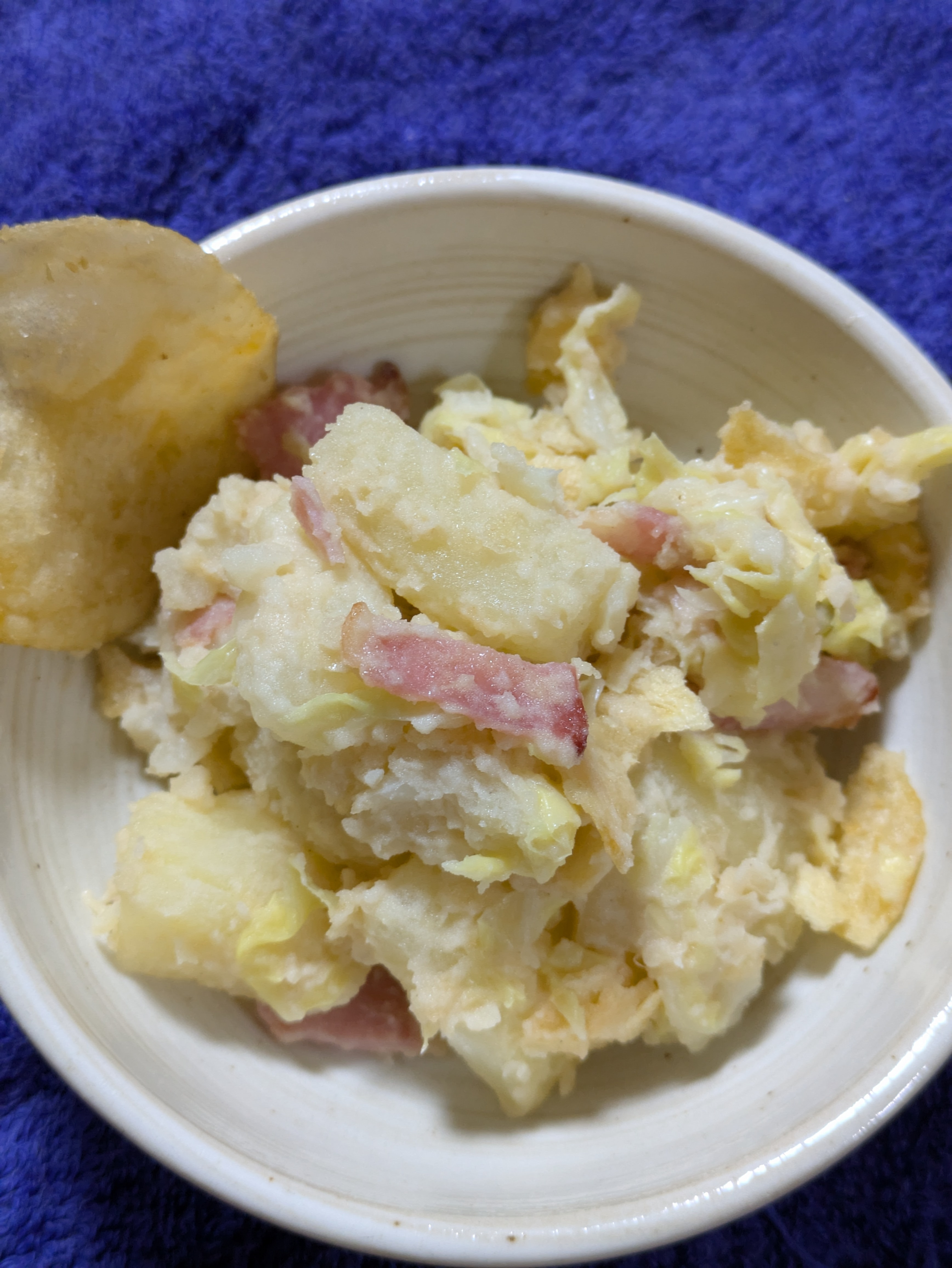 今回はじゃがいも+ポテトチップスのポテポテサラダです。