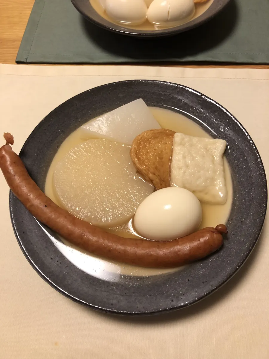 トップ > おやさい企画 > 今シーズン初おでん くるみ 2025/11/06 08:16 今シーズン初おでん 今朝とってきた大根たくさんあるからもらってーと近くに住む元上司に言われ取りに行くと大きい大根4本!母にもお福分けしました🎁 大きな大根でおでん作り♪ 淡雪はんぺん 練り物 こんにゃく たまご 昆布 大根と昆布は炊飯器の調理モードで下茹で、面取り無しでも崩れず柔らかい☺️ 作り出すといつも鍋いっぱいになるおでん 2日目のおでんはロングウインナー入りにしました☺️ おでん いいね コメントする 5 件の返信 (新着順) ミュートしたユーザーの投稿です。 投稿を表示 えっちゃん 2025/11/08 19:47 おでん、からだもココロも あったかくなりますよね 作った日も翌日も楽しめますね いいね 返信する ミュートしたユーザーの投稿です。 投稿を表示 小町 2025/11/08 15:50 おいしそう♪我が家もそろそろ作らなくちゃ いいね 返信する ミュートしたユーザーの投稿です。 投稿を表示 くるみ 2025/11/08 17:11 小町 そろそろおでんの美味しい季節ですよね♪ いいね 返信する ミュートしたユーザーの投稿です。 投稿を表示 草取り名人 2025/11/07 06:29 ロングウインナー!!美味しそうです が、おなかがすぐにいっぱいになってしまいそう ボリュームがありますね いいね 返信する ミュートしたユーザーの投稿です。 投稿を表示 くるみ 2025/11/07 06:54 草取り名人 私はご飯少なめで食べました(笑) 2日目ウインナーも美味しかったです☺️ いいね 返信する ミュートしたユーザーの投稿です。 投稿を表示 ひよっこ 2025/11/07 06:29 関東ではがんとうだいと言って、がんもどき、豆腐、大根がおでんを作ると必ずいれるものだといわれてきました。今はどうだかわからないですが。お豆腐は入れないのでしょうか いいね 返信する ミュートしたユーザーの投稿です。 投稿を表示 くるみ 2025/11/07 06:47 ひよっこ お豆腐は入れた事ないです、焼き豆腐を入れるのでしょうか?厚揚げ?でしょうか、出汁のしみたお豆腐も美味しそうですね。 いいね 返信する ミュートしたユーザーの投稿です。 投稿を表示 soyokaze 2025/11/06 13:25 おでんのシーズンですね🍢 おでんに、なにをつけて召しあがられますか? って いうのが時々話題になりますが、おでん、関東炊き、味噌おでん 等々、たしか姫路の方では生姜醤油、南信州 飯田地方は葱だれ とか? 私は 醤油味ベースで煮込んで 辛子を添えて食べるもの だと思ってましたが~? いいね 返信する ミュートしたユーザーの投稿です。 投稿を表示 くるみ 2025/11/06 16:23 soyokaze 我が家は甘味噌とからし付けて食べます♪ 甘味噌はレンチンで簡単に砂糖、味噌、みりんで作ってます。 地域によって煮干し粉をかけてるおでんとかもありますよね♪ いいね 返信する