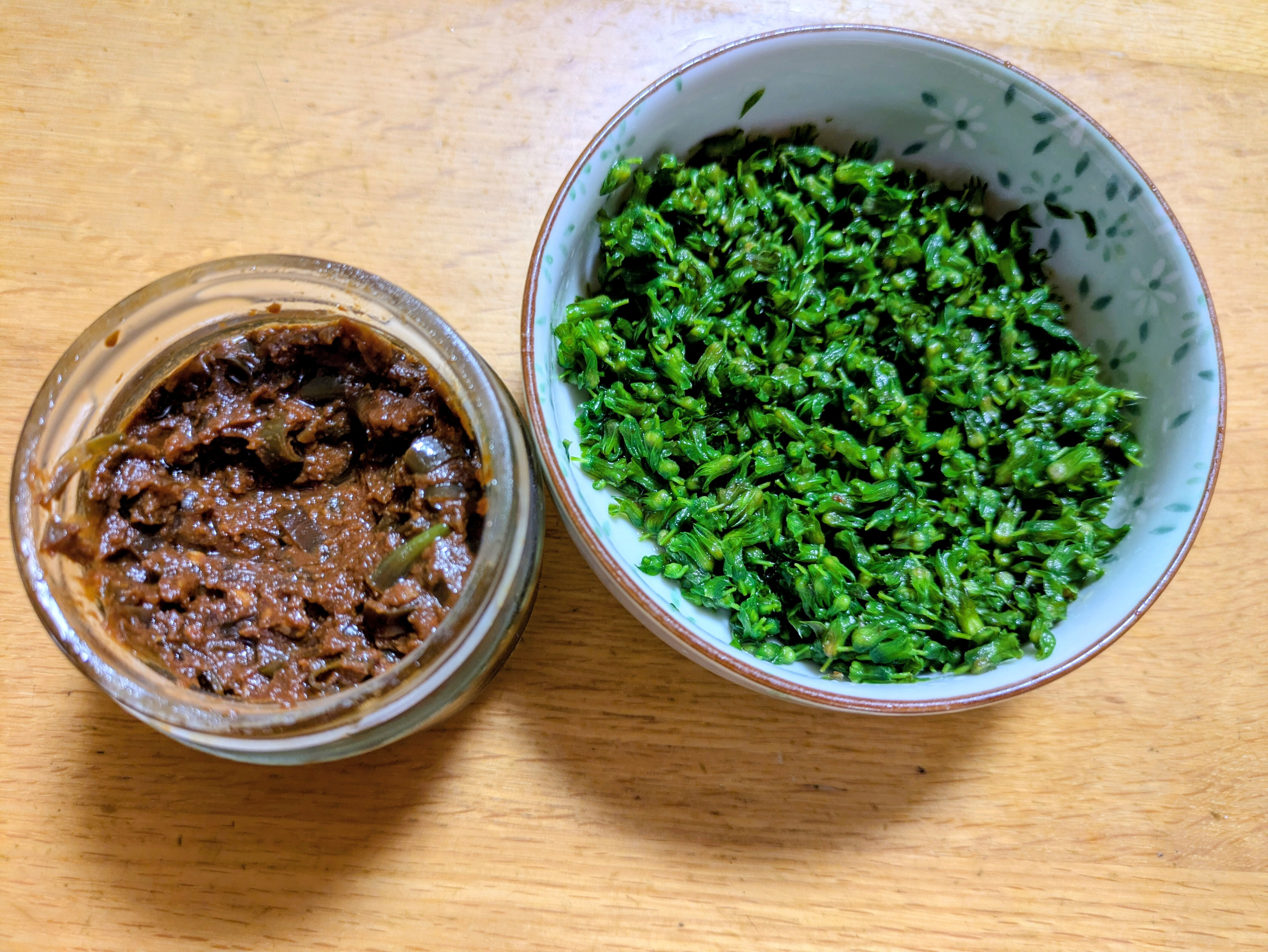 トップ > おやさい企画 > インド人ウソつかない!? えっちゃん 2025/10/06 07:54 インド人ウソつかない!? 右側が穂紫蘇醤油漬け 左が青唐辛子味噌 薬味や料理のアクセントに使う青唐辛子味噌 つい最近まで市販品を利用してましたが 自作できそうと息子が試作してくれて 辛味も調整できるし意外に簡単にできるねと もっぱら自家製になりました 家庭菜園の青唐辛子が少なくなってきたので JAのお店に買いに行ったら 「インド人ウソつかない」という名前(品種名?通り名?)で 青唐辛子を売ってたそうです 納豆や味噌汁にちょっと落としても 肉や魚料理の付け合わせにしてもGood 私はおにぎりの具にするのが好きです いいね コメントする 3 件の返信 (新着順) ミュートしたユーザーの投稿です。 投稿を表示 ひこうき 2025/10/07 18:43 面白い名前ですね 美味しそうです✨️ いいね 返信する ミュートしたユーザーの投稿です。 投稿を表示 くるみ 2025/10/06 18:57 青唐辛子味噌美味しそうですね!私はピーマン味噌作っていて今年もと思っていたら夫の栽培したししとうが辛くてそのまま冷凍保存しているので辛味噌作り挑戦しようかなと思ってます! いいね 返信する ミュートしたユーザーの投稿です。 投稿を表示 えっちゃん 2025/10/08 10:57 くるみ ピーマン味噌もよいですね。 ししとう、是非チャレンジしてみてください(^^)/ いいね 返信する ミュートしたユーザーの投稿です。 投稿を表示 soyokaze 2025/10/06 09:27 えっちゃん おいしそう~ 穂紫蘇って店頭で見かけたこと無いのでうらやましいです いいね 返信する ミュートしたユーザーの投稿です。 投稿を表示 えっちゃん 2025/10/06 11:27 soyokaze ありがとうございます。 紫蘇はプランターで栽培できますし こぼれ種で毎年芽を出しますし、 秋のこの時期の穂を利用しています いいね 返信する