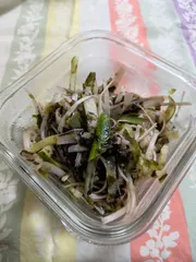 キュウリと長ネギのサラダ 細切りキュウリと長ネギを韓国海苔で和えます。簡単にできる一皿です