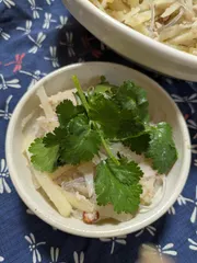 タイ風ポテトサラダ 大好きなパクチーを何の料理に使おうかな~と考えていてポテトサラダにアレンジしてみては?と小林カツ代さんの「タイ風ポテトサラダ」のレシピをちょっとアレンジしたホットサラダです。 じゃがいもと春雨、豚挽肉とタマネギで作ります。できあがったところにどーんとパクチーのせて、(サラダが見えない💦)い