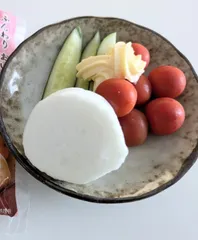 はんぺんサラダ 庭で採れたトマト きゅうりはんぺんをそのままのせたサラダです🥗