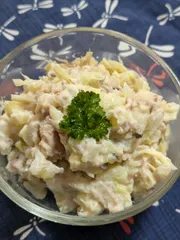 これはポテトサラダなのかという問題提起を含んだご提案ですね。 素晴らしいです。 コールスローなのか?ポテサラなのか? 意見はいろいろあると思いますが 私は「潰さないポテトサラダ」だと考えてみるのが面白いと感じました。 茹でるの面倒とか潰すの面倒!ってよく聞きますので、 こちらのご提案なら少しのレンチ