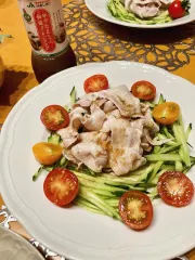 冷しゃぶサラダ 暑い毎日しっかり食べて夏バテ知らずでいたいです╰(*´︶`*)╯♡ JAあしきたさまのドレッシングがお気に入り♡ 冷しゃぶに、たっぷりきゅうりを巻いて、柚子胡椒、ドレッシングで頂きました!