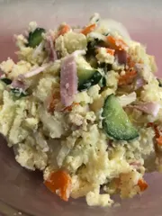 kojiさん 【ぽて三郎コメント】 2回目の投稿ありがとうございました。 今回は「これはポテトサラダに入るのでしょうか?」というkojiさんの質問にお答えいたします。 先ず、結論ですが「ポテトラダに入ります」。 いろいろな文献やネット情報では、必須条件は「茹でたじゃがいもを主材料にしたサラダ」で