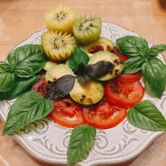 一昨日のサラダは…お庭から。 お庭から、といってもバジルだけですが笑まだトマトは赤くならない…暑すぎて成長がゆっくりです。バジルは大きく育ちすぎました