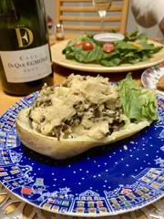 塩昆布❌ポテサラ🟰、、、😱 おっきなメークインを蒸して 中をくり抜き、ポテサラに❣️ で、問題はココから‼️ じゃがいも🥔と同じ、北海道の塩昆布入れたら、食感や旨味面白いかな⁉️ やってみました‼️ はい、おススメしません🤣