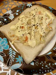 ポテサラ次の日はトースト マヨと黒胡椒追加で ポテサラトースト このままでも焼いても良し‼️ みんなやるよねーポテサラサンド的な朝ごはん🤭