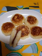 芋もち 北海道は私にとって憧れの旅行先です。でも中々行けないので百貨店の北海道展が好きで、芋もちもよく出店されてて、夕食に作ってみました。中にナチュラルチーズを入れて焼くとホカホカで、ぺろりと食べました。