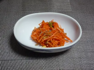人参 久しぶりに人参のサラダを作りました。ドレッシングをかけて美味しく頂きました。