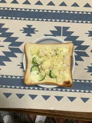 ポテトサラダとチーズ乗せパン 昨日作って残ったポテトサラダを利用しました。多めに作ってアレンジできるので便利