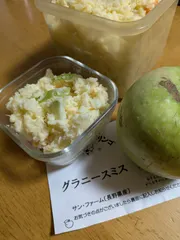 りんごのポテトサラダ 今年もグラニースミスが届いたのでりんごポテサラを作りました。普通のりんごでも作りますがグラニースミスは1年に一回の収穫ということで節目的な? ぽてっこキッチンが始まって間もない頃りんご入りのポテサラを投稿してましてそれからもう1年になるんですねー 酸味強めりんごなのでとても爽やか
