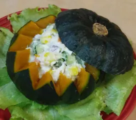 かぼちゃんボテサラ どっちがメインかな?最後の かぼちゃ の中に ポテトサラダ を詰めてみました。これが一番食べ易かったです(^◇^;)