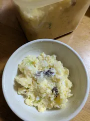 サクラ🐴ポテサラ 燻製馬肉(今回はモモ肉)を作ってもらいポテトサラダの具にしています見た目地味ですがしっかりした味付けと歯応えの馬肉がポテサラに華を添えています!
