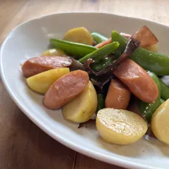🥔🥔美味しい時期です🫛🫛✨ 今時期の美味しいものを炒め合わせてオイスターソースで味付け。 生きくらげは一回さっと湯通しして量が多ければ冷凍保存も出来ます。