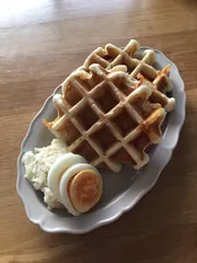 くるみ家☆週末モーニング 《じゃがいもワッフル》 食事系ワッフルを簡単に☺️4枚分 ①小さめじゃがいもをすりおろし水を足して100mlにしておく②ホットケーキミックス1袋を入れてゴムベラで混ぜる③ベーコン細切りとピザ用チーズを入れて混ぜる④ワッフルメーカーで焼く 塩気が効いてて食事系ワッフルカリ