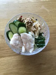 今日のサラダ 朝食用1人分サラダ 千切りキャベツきゅうりしそくるみ生姜甘酢漬け(ジンジャーエール素を作った生姜を酢で漬けたもの)サラダチキン 梅酢ドレッシングで食べました☺️ サラダチキンの缶詰、最近どこのスーパーにも無い(T . T)私の愛用品だったのに、、ツナ缶みたいな缶の中身は