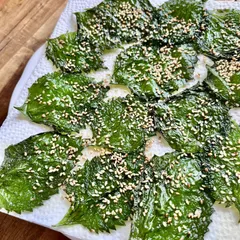 パリパリ大葉の韓国のり風 自宅で大葉収穫がたくさん出来たので大葉の韓国海苔風を作りました。 ご飯に巻いてもサラダのトッピングにちぎって使ってみたりアレンジは色々自分次第 大葉が残ってる、黒くなる前に是非簡単に出来るので作ってみてくださいね。  ̄ ̄ ̄ ̄ ̄ ̄ ̄ ̄ ̄ ̄ ̄ ̄ ̄ ̄ ̄ ̄大きめの耐